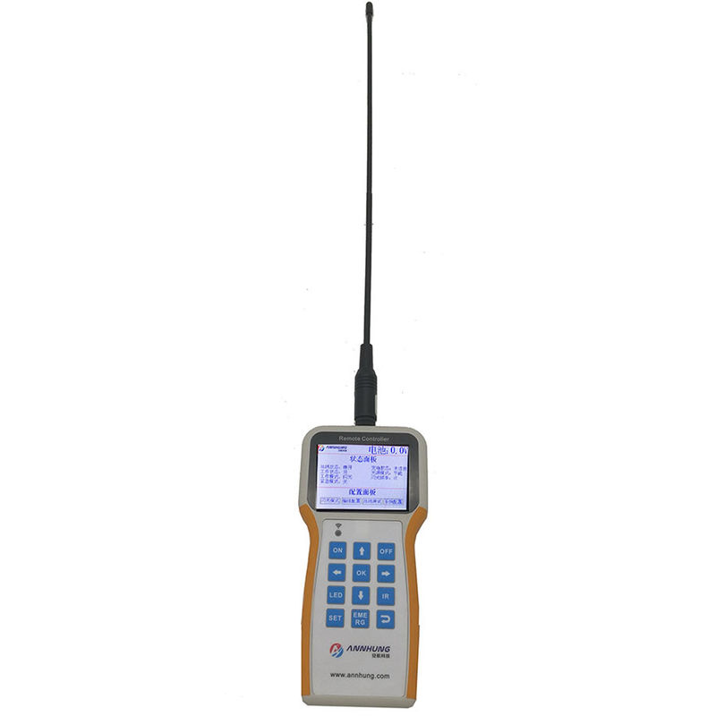 AH-HP-RC draadloze handheld afstandsbediening wordt gebruikt voor alle ANNHUNG zonne / draagbare vliegveld licht, de communicatie frequentie is 433MHZ, effectieve afstand is tot 3km ((meer dan 3km is aangepast).